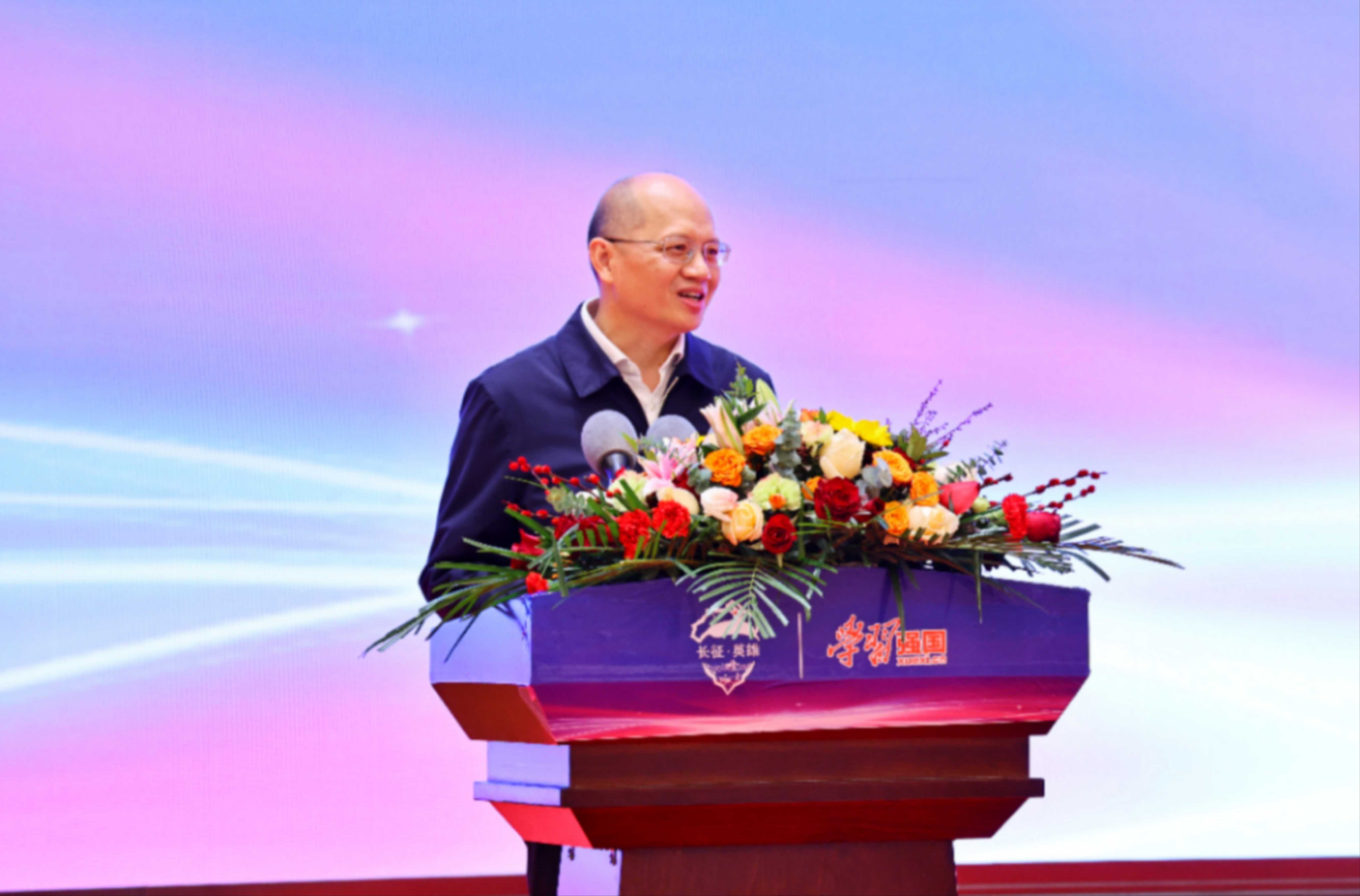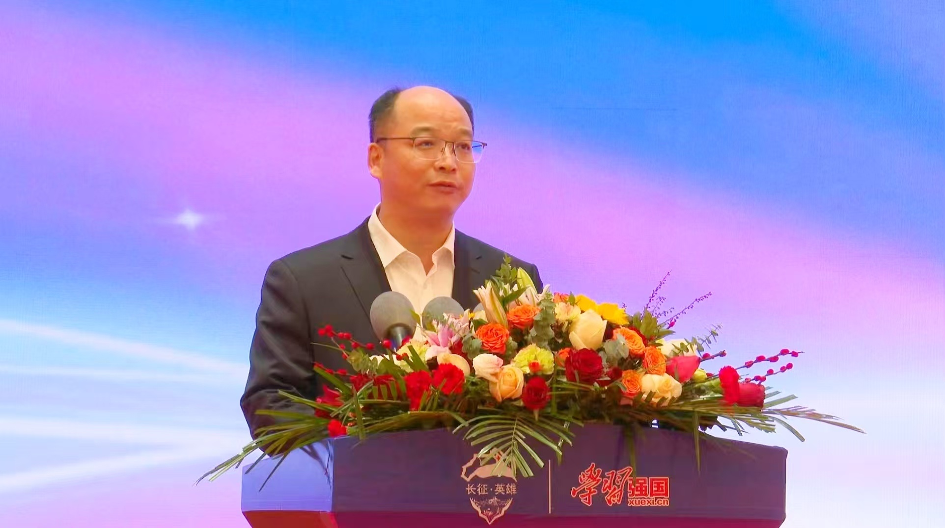 中宣部宣传舆情研究中心党委书记、主任,“学习强国”学习平台总编辑农涛致辞。江西省瑞金市融媒体中心 供图