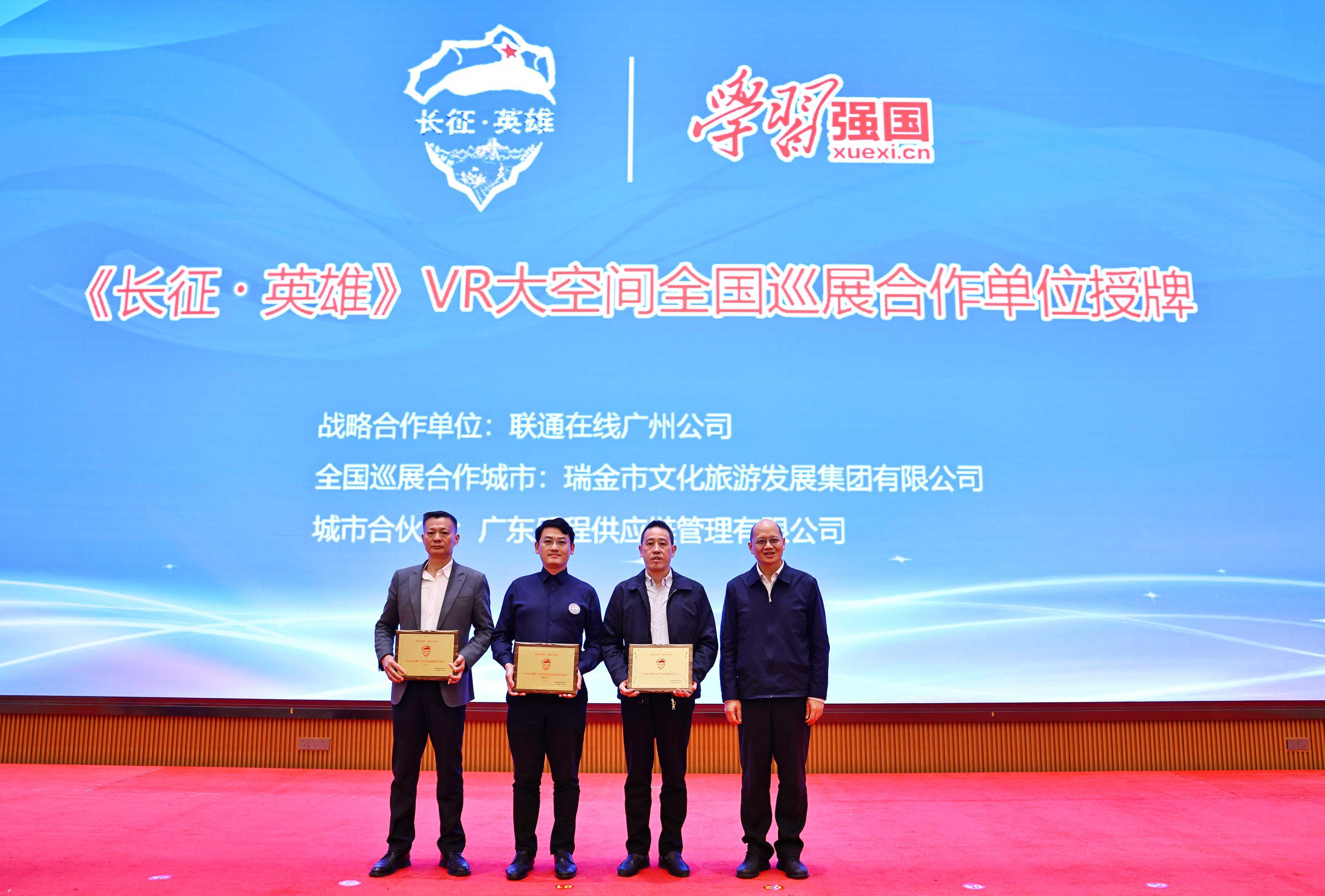 活动现场,农涛为《长征·英雄》VR大空间项目战略合作单位联通在线广州公司、全国巡展合作城市江西瑞金及城市合伙人广东乐程供应链管理有限公司授牌。与会嘉宾代表共同点亮活动徽章,标志《长征·英雄》VR大空间项目正式启动。
